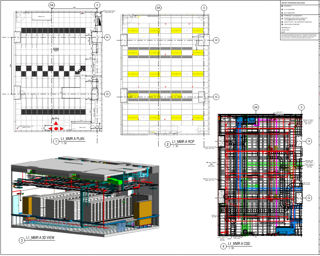 Coordinated drawings are meticulously prepared through seamless integration of architectural, structural, and MEP systems, along with all other project scopes, ensuring that no issues remain unresolved. This comprehensive approach involves creating various types of drawings, including CSDs, ISDs, IFCs, and CDs, which facilitate effective site execution and off-site prefabrication.